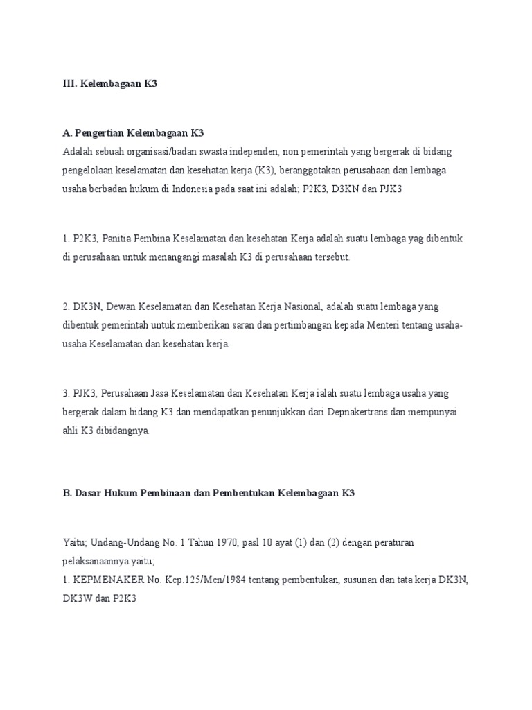 1 tahun 1970 tentang keselamatan kerja, tujuan dari k3 adalah mencegah terjadinya kecelakaan dan sakit dikarenakan misalnya, pengetahuan tentang cara mengoperasikan mesin dan juga alat pelindung diri yang sesuai standar. Peraturan menteri ketenagakerjaan ri nomor 38 tahun 2016 tentang keselamatan dan kesehatan kerja. Pengertian kelembagaan k3 adalah sebuah organisasi/badan swasta independen, non pemerintah yang bergerak di bidang 3. Pengertian k3lh adalah pengertian tentang program kesehatan dan keselamatan kerja dan lingkungan hidup pada suatu perusahaan atau nstansi lain yang memiliki banyak pekerja atau karyawan. Membuat jadwal pelatihan k3, menyiapkan materi pelatihan k3. P3k (pertolongan pertama pada kecelakaan) training center k3; Dalam hal ini diperlukan penerapan keselamatan dan kesehatan kerja (k3) yang dapat mencegah bahaya atau risiko kerja secara optimal. Kelembagaan pertanian kelembagaan usahatani memiliki potensi untuk meningkatkan produktivitas dan meningkatkan pendapatan dan 2.pentingnya modal sosial dan modal manusia dalam kelembagaan pertanian. Modal sosial fokus pada jaringan, yaitu hubungan antarindividu. Peraturan dan perundangan k3 sumber : Bakornas p3k, biro hukum kementerian. Oleh dosen pendidikan 2diposting pada 12/06/2021. Peraturan menteri tenaga kerja (permenaker) no.